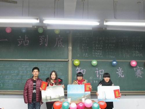 为提高老员工的综合素质、拓宽知识面,由我系团委主办、生活部承办的“一站到底”百科知识竞赛于2014年12月3日晚6:00,在教学一号楼111教室如期举行。出席当晚活动的嘉宾有:团委书记助理杨博博、员工会主席刘乾坤、员工会副主席黄河、礼仪队队长卢毅丹。