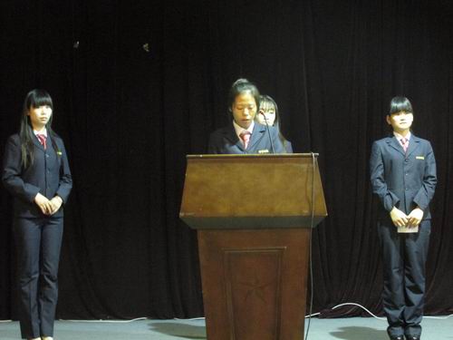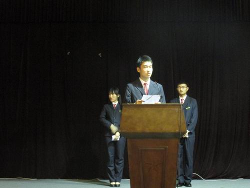 在庄严的国歌和激昂的共青团团歌声中,大会拉开帷幕,全场气氛严肃而庄重。团委书记陈刚老师首先以“服务同学,奉献集体,践行社会主义核心价值观”为主题对在场的全体同学做了培训报告。重点提出对团学会成员及本期团校学员的六点要求:“政治过硬、牢记宗旨、加强修养、勤思苦学、遵纪守法、注重细节”,以及对他们的殷切希望:“发挥团队力量、学会时间管理、发扬志愿精神、勤于思考总结、珍惜服务机会、提升全面能力”。同时,他用四个“实”——“实干、实际、实践、实力”,用三个“第一”——“责任第一、工作第一、奉献第一”给予同学们鼓励,希望全体同学能够将优良的学习习惯、踏实肯干的精神、勤俭朴实的作风继续发扬光大,以实际行动努力践行社会主义核心价值观。