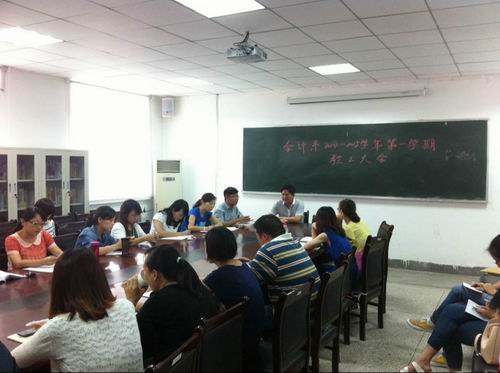 新学期伊始,为使会计系学务系统全体老师们尽快行动起来,迎接新学期的挑战,在会计系党总支张红阳副书记的带领下,会计系行政秘书陈刚老师、刘锦老师和全体辅导员于2014年9月2日下午2:30在系会议室召开了新学期第一次学务工作会议。