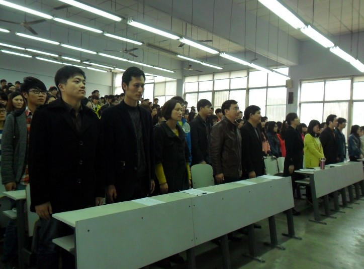 伴随着庄严肃穆的《国际歌》,大会正式拉开了帷幕。首先,赵老师带领71名新党员举起右手,紧握拳头,面向党旗郑重宣誓。之后,新党员代表张晓慧同学和入党积极分子代表张昆豪同学进行发言,他们都讲述了对党的认识,表示要以一名正式党员的标准严格要求自己,不断提高自己,以实际行动发挥一名党员的作用。