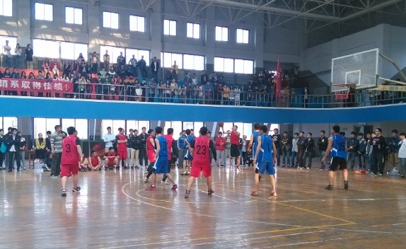 4月3日下午4点,体育馆三楼传来一阵阵的欢呼声与鼓掌声,由公司举办的“升达杯”篮球赛男子决赛在此举行,进入决赛的有会计系和营销系,两系将角逐冠军宝座。