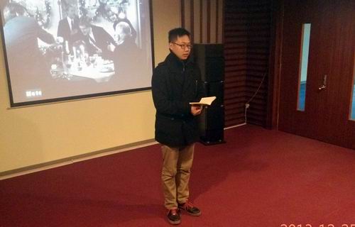 会议伊始,会计系团委书记陈刚老师进行讲话。陈老师首先对本学期以来大家从迎新生到学期最后各项活动中取得的成绩表示了肯定,正是由于大家的共同努力,我系各项活动开展有序,效果突出。其二,陈老师也对工作中存在的不足给予了指正,告诉大家不仅要延续良好的传统,还要在活动中有所创新,积极开展创新型活动。希望大家共同努力,在接下来的工作中取得更好的成绩。同时祝愿大家在即将到来的期末考试中取得好成绩,预祝大家假期愉快,陈老师亲切的讲话赢得了大家热烈的掌声。