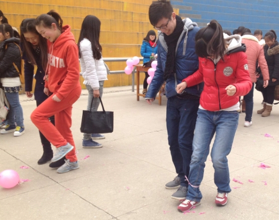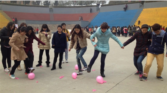 本次活动由各个系一起举办且以游戏为主,各种各样的游戏让同学们眼花缭乱,如“踩气球”、“地狱天堂”、“金鸡独立”、“双人跳”,活动现场可谓是热闹非凡。每一个游戏的等待区都是满满的,同学们都在争分夺秒的选择游戏。尤其是“踩气球”和“地狱天堂”区,引来了全院女生的关注。伴随着气球的爆破声是大家的欢笑声,你来我往,精彩不断。每一位同学都是用智慧来完成游戏,享受游戏带给他们的欢乐。