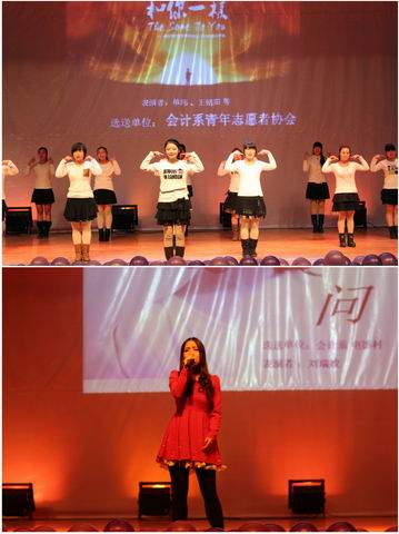 为促进会计系社团文化建设,加强各个社团之间的交流与合作,展示社团风采,由会计系团委主办、会计系社团联合会承办的第五届“冬季恋歌”社团风采展示文艺晚会于11月27日晚6:30在思源会馆精彩呈现。到场的嘉宾有会计系行政秘书兼团委书记陈刚老师,行政秘书刘锦老师,会计系团委常务副书记焦阳老师,会计系2013级全体辅导员老师,院员工会副主席王仁涛,院社联理事长马鹏飞,各系员工会主席、团委副书记以及特邀嘉宾——泰山先锋幼儿园的老师和小朋友们,来自各系1700余名观众到场观看了晚会。