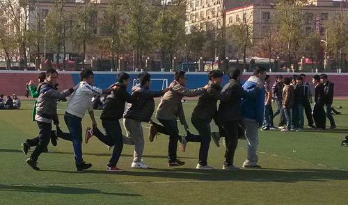 本次趣味运动会共有15个项目,其中包括“平起平坐”、“滚雪球”、“多人多足”、“开火车”等各种妙趣横生的游戏,三个系的对口部门组成一队参加比赛。操场上的团学成员们热情洋溢,使得这场趣味运动会更加令人期待。三个兄弟系的员工会主席、团委副书记均参加比赛,也更加带动了大家的参与热情。