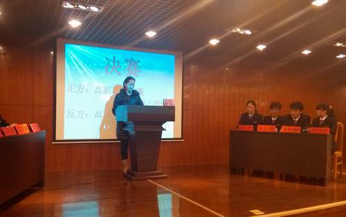 此次决赛分上半场——季军争夺战和下半场——冠军争夺战。上半场的辩论双方分别是正方会本十四班、反方会本九班,他们的辩题分别是“高新可以养廉”、“高新不可以养廉”,下半场的辩论双方分别是:正方会本八班、反方会本三班,他们的辩题分别是:“狭路相逢勇者胜”、狭路相逢智者胜”。在开篇立论环节,一辩们都立足于本方观点,为下面的环节打下了基础,在自由攻辩环节,辩手们的一问一答,更把他们的聪明才智发挥的淋漓尽致,总结陈词环节中,辩手们引据经典、妙语连珠、把本次辩论赛又推向了一个高潮。我系11级辩论队队长王芦静、院辩论队队长王冲分别为两场比赛进行了精彩点评。