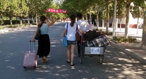 8月30日,在行政楼前,团学会干部面带笑容,精神抖擞,热情接待家长和新生,向他们讲解一些注意事项,并把新生引至体育馆办公点。体育馆内,相关老师和工作人员认真核对新生同学的各类证件及信息,并发放程序单、缴费单,办理宿舍分配及注册手续,在办完一切手续后,我系团学会干部蹬着三轮车积极为各位新生搬运行李,并送至宿舍,每一环节的工作都得到了新生及家长的一致肯定和称赞,使他们深切感受到了会计系大家庭的温暖。尽管烈日当头,大家都坚持奋战在自己的岗位上,忙的不亦乐乎。期间,公司及我系党政领导还亲自到报到现场指导工作,给了工作人员莫大的鼓舞。