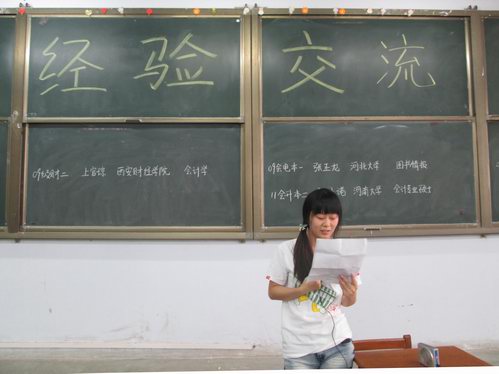 本次交流会共有两个环节,分别是经验传授环节和提问答疑环节。在经验传授环节中,他们真诚的向低年级同学分享了自己考研的经验,分别从数学 、英语 、政治 、专业课这四个方面分析了考研的准备工作和学习方法,重点强调要有计划,注重技巧,多动脑,勤动手,学习是要注意保持愉快的心情,找到适合自己的释放压力的方法。另外,他们还谈到考研的成功等于正确的方法加之不懈的努力以及恰当的复习资料,并讲述了考研初试和复试中应注意的问题和应掌握的技巧以及选择报考公司时应注意的问题,提出了合理化的建议。他们朴实的话语,清晰的条理,赢得了同学们阵阵热烈的掌声。