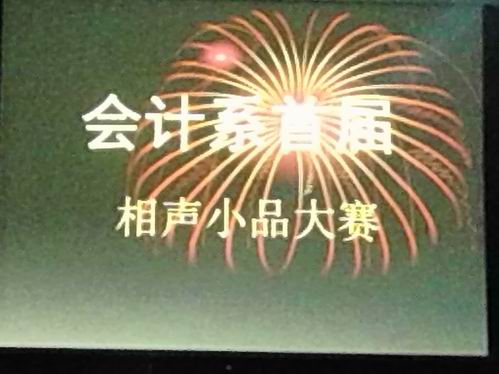 2013年04月10日晚上6:30,由会计系社团综艺俱乐部主办的相声小品大赛在龙湖报告厅精彩上映。员工会主席吴亚玮、团委副书记沈祥、社联理事长孔维超、员工会副主席张奥等主要团学干部以及我系2012级各班同学近400人观看了比赛。