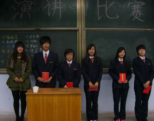 会计系现任演讲辩论队队长樊芯宇、学艺部部长丁琳曦,10级演讲辩论队队长黄铭华分别为获得三等奖的刘攀等同学、获得二等奖的邓忍等同学和一等奖获得者陈屹飞同学颁奖并合影留念。12级会本八班、12级会本十班、12级会本十一班分别获得了精神文明奖、最佳组织奖和道德风尚奖,至此,会计系2012级新生演讲比赛圆满结束。