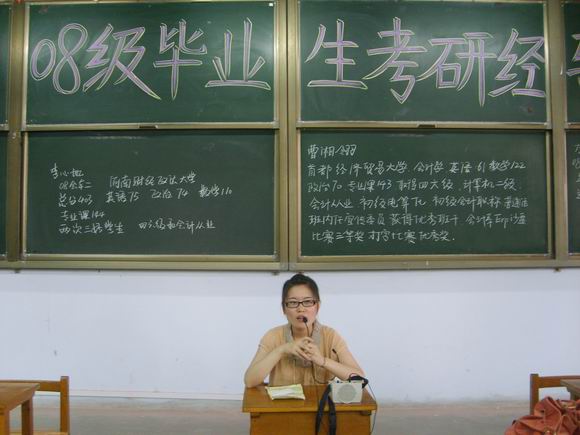 在会计系教师的的精心辅导和员工的辛苦努力下,2012年的考研会计系再创佳绩,有51位同学如愿以偿考取包括首都经贸大学、武汉大学等国内知名高校在内的研究生。为了学习经验的传承,让低年级员工在未来考研的道路上走的更稳、走的更远,会计系财务管理教研室于6月12日下午16:40在教学一号楼108教室组织举办了2012届会计系毕业生考研经验交流会。