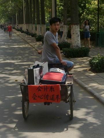 活动期间,毕业生们积极踊跃,有的捐出了自己保存完好的书籍;有的捐出了已洗干净叠整齐的旧衣物;还有的捐出了台灯、水壶、脸盆等生活用品。捐赠现场异常热闹,他们希望这些东西可以帮助那些有困难的学弟学妹们,短短三天时间,就收到了很多我系甚至其他系毕业生们爱心捐赠的物品,期间,我系“爱心捐赠”活动专用三轮车还担负起了帮助毕业生运送行李的重任,更是增进了学弟学妹们和毕业生同学之间的深情厚谊。