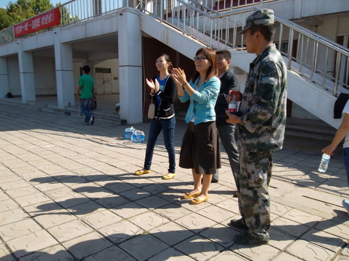 9月14日上午10:00,按照系党政领导的安排,会计系张欣主任、行政秘书陈刚老师、行政干事刘锦老师和全体新生班辅导员一行到公司田径场关心慰问正在进行军训的教官和2012级本专科参训新生。