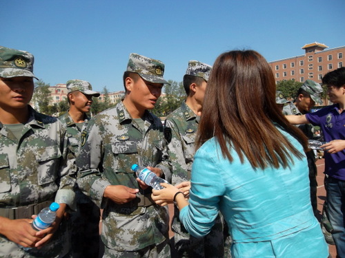 系领导还为教官们送上了金嗓子润喉糖和矿泉水以示慰问。