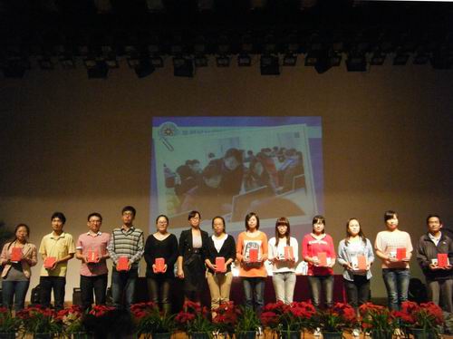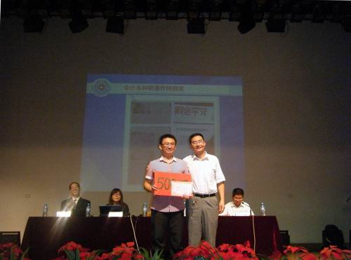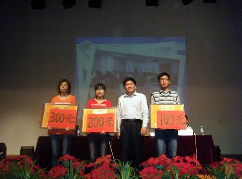 大会首先表彰了在2011--2012学年我系参加第八届全国老员工“用友杯”沙盘模拟经营大赛省赛荣获二等奖的同学、参加第四届全国老员工“金蝶杯”创业大赛获得豫晋赛区一等奖的同学、参加第四届校园财会实务大赛的获奖同学及团体,分别由到会的领导和老师对优秀学子们颁发荣誉证书和奖金、奖品并合影留念。会上,还为河南省通过CIMA基础级考试第一人、获得CIMA商业会计证书的我系09涉外会计本1班张晓旭同学颁发了“证照考试特别奖”及500元奖金,为刻苦钻研专业知识并注重学术研究,分别在核心期刊《财会通讯》和国家级期刊《财会学习》上发表文章的09涉外会计本1班张本磬同学颁发了“科研著作特别奖”及500元奖金,以此激励2012级新生们能够以获奖同学为榜样,认真学习专业知识,积极参加课外实践活动,提高自己的动手能力,为未来的发展做好充分准备。