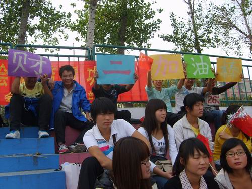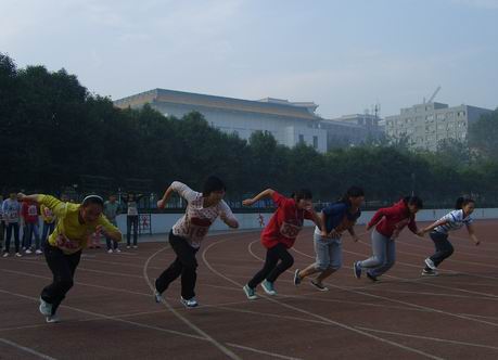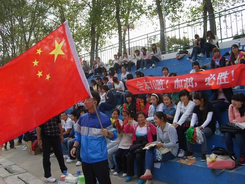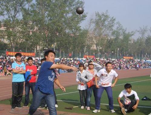 运动员们精神饱满地走向各自的比赛场地,场边飘舞着各色的彩旗,看台上坐满了前来观看并呐喊助威的2012级各班啦啦队同学。工作人员们认真负责、一丝不苟,赛场上的运动健儿激情飞扬、奋力拼搏。红色的跑道固然美丽,黄色的沙地同样辉煌。铅球场地上,掷铅球的运动员们都在“摩拳擦掌”,随后铅球形成的美丽抛物线,蓄满力量砸向沙坑。跳高场地上,跳高队员们个个身轻如燕,助跑、起跳、越过横杆,轻盈而又美丽。为了给同学们鼓舞士气,2012级辅导员老师们也亲自上阵参加了100米短跑的比赛,那一刻,加油呐喊声和此起彼伏的掌声把整个运动会推向了高潮。