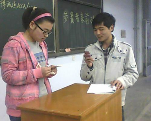 4月9日晚上6:30,由院团委主办、会计系团委承办的公司第一届中博杯“金手指”大赛系列活动之——点钞比赛决赛在龙湖报告厅如期举行。院团委石守金老师,北京中博诚通国际郑州分部高守中、侯利鹏老师,会计系团委书记陈刚老师以及公司各系500多名同学共同观看了这场别开生面的比赛,比赛在中博诚通国际高守中老师的讲话中拉开了帷幕。