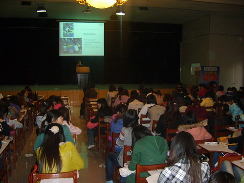 4月12日晚上6:40分,由会计系主办的《老员工职业生涯规划》公益讲座在龙湖报告厅隆重举行,特别邀请到了常春藤留学机构的郑老师。会计系09级全体同学纷纷参加,全场座无虚席。