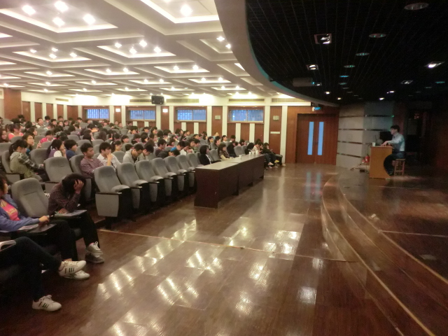 4月17日下午2点在外语一号楼的多媒体报告厅,会计系邀请到公司优秀员工,现今有所作为的企业家——赵本才先生,为广大师生作了一场关于个人创业的财务经验讲座。