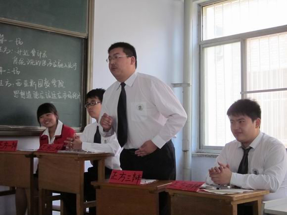 会计系正方代表队的四名同学与来自西亚斯的反方代表队的四名同学,本着“友谊第一、比赛第二”的原则就“传统文化的传承应融入流行还是保持原汁原味”以及“思想道德应该适应市场经济还是超越市场经济”为辩题展开了激烈的辩论。立论环节,双方一辩对各自所持的观点进行具体陈词,各抒己见、针锋相对;驳论环节,双方二、三辩积极提问,回答中肯,反驳有力;自由辩论环节,辩手们反应机敏,语言流畅,说理透彻;总结陈词环节,双方四辨再次强调各自所持观点,语言犀利,条理清晰,每一支队伍都气势逼人,力求在气势上压倒对方,双方面对辩友的猛烈攻击镇定自若,凭借快速的反应和有力的言辞化险为夷。正反双方口若悬河,唇枪舌战,时而慷慨激昂,时而咄咄逼人。辩手们的妙语连珠,能言善辩 ,令人惊叹叫绝,现场的氛围也随着自由辩论顿时达到高潮。