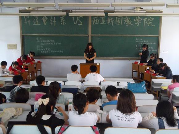 5月17日下午3:30,会计系与郑州大学西亚斯国际公司教育公司联合举办的友谊辩论赛在教学一号楼111教室如期举行,会计系员工会主席程振宇、院辩论队队长刘文龙及部分团学干部到现场观赛。