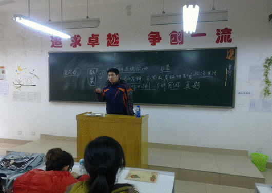 其次,王彬老师对考研问题进行详细讲解。他指出:第一、考研不等于高考。对此他讲解了研究生的误区和研究的切入点,强调开阔视野,善于质疑,端正考研心态。第二,以“磨刀不误砍柴工”为例,他提醒考研员工要善于分析自己,自我解剖,从而计划自己以后的发展方向和强化自己的分析能力。第三,他认为“快乐考研,培养对知识的敬畏精神”才是考研的最终目的。并对此以自身考研经历为例,讲述个人考研心得。