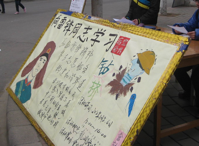 系宣传部、青年志愿者协会精心制作了展板、条幅,向同学们生动形象的诠释了雷锋精神的时代内涵,鼓励同学们积极学习雷锋精神,发扬雷锋同志的优良品质,宣传活动调动了同学们的积极性,也为整个校园营造了积极向上的氛围。