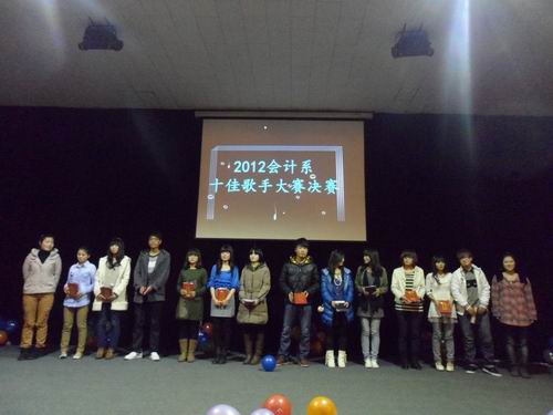 3月7日晚6:30,由会计系文艺部举办的2011级“十佳歌手大赛”决赛在龙湖报告厅顺利举行,出席本次比赛的领导和老师有会计系行政秘书兼团委书记陈刚老师,辅导员李南方、陈姣、李明鸿老师。我系2011级各班啦啦队同学500余人一同观看了比赛。