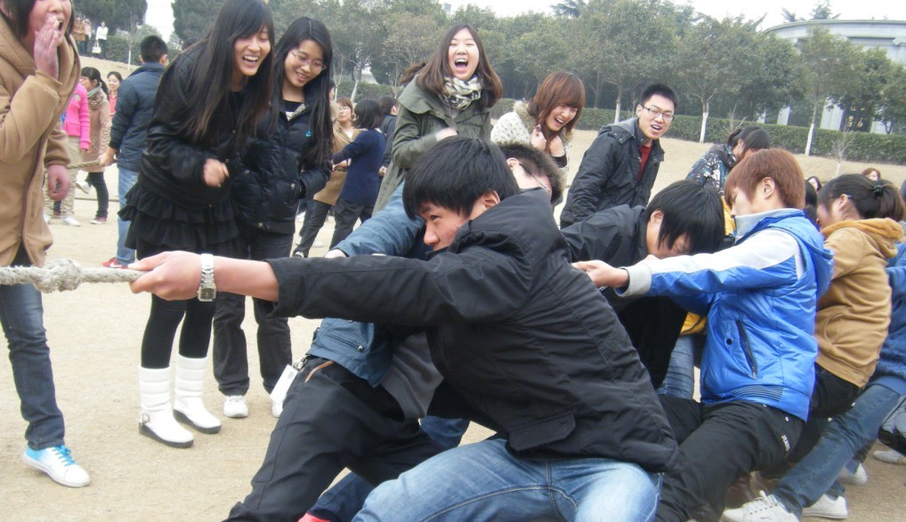 比赛以抽签方式决定自己的比赛对手。除上场参加比赛的成员,其他同学都积极主动组成啦啦队,为自己所在的部门呐喊助威,虽然天公不作美,然而会计系团学会成员却依旧在微风细雨中使出自己浑身的力量,奋力将绳子拉往自己的一边,不放弃,坚持到底。激烈呐喊声此起彼伏,飘荡在比赛场地上空。经过近两小时的激烈的角逐,最终尘埃落定。荣获第一名的部门是组织部,风纪部和学艺部分别荣获了第二名和第三名。