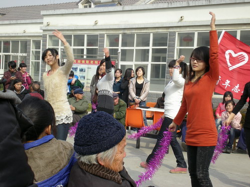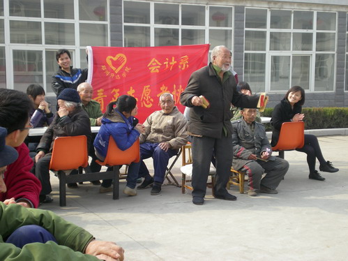 早上八点,青志协的成员集聚在公司大门口,整装待发,大家怀着激动的心情经过三十分钟的路程到达了目的地。老人们齐聚在院内,志愿者和老人们拉起家常。随后,志愿者们为老人精心准备了一场晚会,有让人充满回忆的《外婆的澎湖湾》、祝福老年人幸福万年的《幸福万年长》、戏剧相声——段子《三句半》、诗歌《夕阳红》等精彩节目,把美好的祝福献给了所有的老人们。老人们也在这些精彩节目的带动下为大家表演了口琴、打快板、拉弦子,掌声和笑声交绘成了一曲优美温馨的旋律。最后,此次活动在《南泥湾》的动听旋律中结束。临走前,志愿者们还把亲手折的千纸鹤送给老人,希望能他们带来好运。