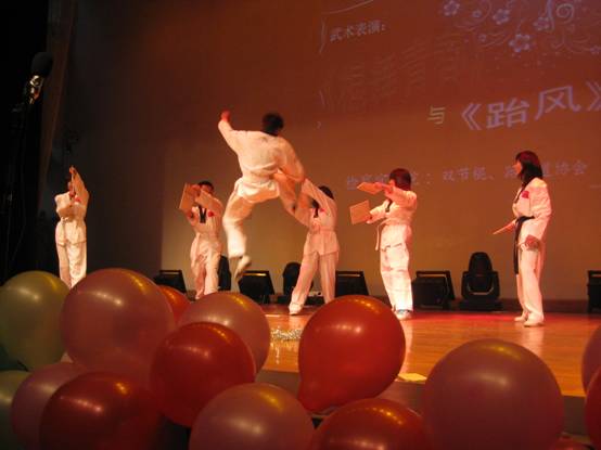 晚会以一支惟妙惟肖的开场舞《盛世牡丹》拉开帷幕。开场舞后,晏玲玲老师致开幕词,晚会正式开始。节目形式花样百出,融合了多种现代元素。在一曲美妙的歌曲《我相信》之后,检查官公司的跆拳道、双节棍表演《棍舞青春与跆风》震撼了全场,赢来了同学们的阵阵掌声和欢呼声;小品《唐伯虎点秋香》又将同学们带入了另一个时空里,给大家带了不一样的感受;带有时尚色彩的舞蹈《show time》和《服装秀》大大吸引了大家的眼球,精湛的舞技和模特们的走秀,都令在座的观众们为之赞叹;我系舞蹈队的《青花瓷》,美轮美奂,更是将晚会推向了高潮;随后的军事表演,话剧《爱错过,不再来》,拉丁舞《火引冰心》,歌曲《说你爱我》也都精彩绝伦;话剧《感恩》,演员们精湛的演技和感人肺腑的台词,更激励大家要懂得感恩,常怀感恩之心。最后晚会在一曲《相亲相爱中》圆满结束。