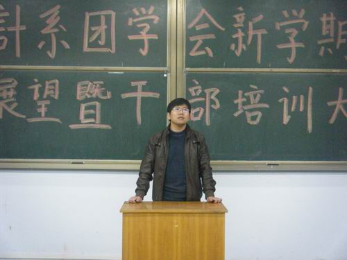 最后,由行政秘书兼团委书记陈刚老师进行培训讲话。陈老师首先对前一阶段各部门的工作进行了肯定,并提出了进一步的要求,希望大家在做好工作的同时务必重视学习成绩的提高,在做好团学工作的同时要做好班级各项工作,要在各个方面都起到模范带头的标杆作用;在工作中要更好地发挥主观能动性,力争做到“不等、不靠、不要”;要认识到团学工作和团学干部的重要性,要在工作中注重组织协调能力、管理能力、领导能力、服务能力、交际能力、表达能力、学习能力、创新能力等八种能力的培养和提高;要正确看待“有为”与“有位”的辩证关系,不断增强责任意识;要将团学工作作为一番事业、一门科学、一种艺术来看待,力争通过大家的共同努力将我系的团学干部队伍锻炼成一支有创新力、学习能力强的实干型队伍。