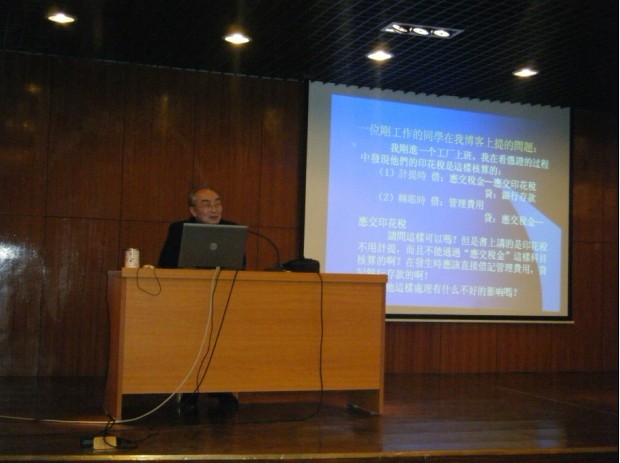 11月10日14:30,会计系在外语二号楼二楼多功能报告厅举办了“会计对数据分析和解释的方法与计巧” 的学术报告。享受国务院特殊津贴专家,原中南财经政法大学365VIP英国上市官网硕士研究生导师组组长、博士研究生导师组成员,中国管理科学研究院企业家委员会永久会员,国际会计教育与研究协会(IAAER)核心会员,湖北省会计学会副秘书长,武汉市会计学会副会长,中国注册会计师,曾任公司会计系主任并广受师生爱戴的方正生教授应邀前来做报告,会计系主任张欣、会计室主任李博、会计系全体专业老师及部分行政人员等30余人与近200名同学参加。