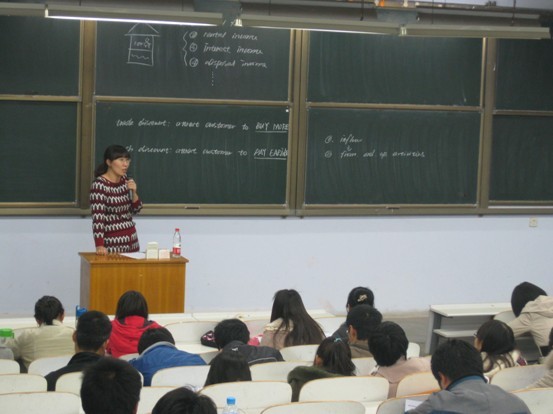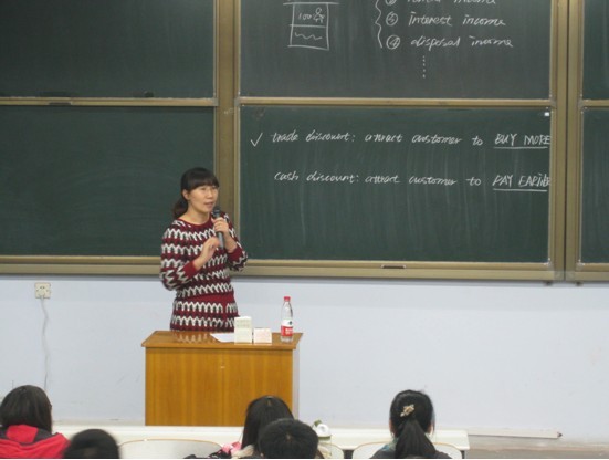 本次讲座介绍的是关于国际特许会计师方面的知识,主要侧重讲解在财会、金融、管理方面的问题。萨仁娜老师通过一些具体的案例让同学们可以更好的了解ACCA。她还为在场的每个同学分发了ACCA的课堂讲义,详细的讲解了关于国际会计准则中18号准则,中英结合,图文并茂,生动活泼,师生互动,课堂气氛非常活跃。最后又进行了现场答疑,老师针对员工提出的一些疑问,当场给予了解答。