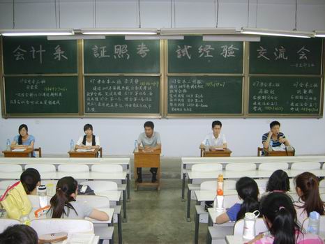 本次交流会由会计教研室负责,邀请了07会本二班的马颖超同学、07级会本三班的巩聚朝同学、刘振同学、07涉会本二班的李奕静同学以及09级会电专三班的司莹莹同学来为低年级的同学介绍自己在考注会考试、选调生考试、公务员考试以及会计证考试中的经验和技巧。即将毕业的学长学姐们采用诙谐幽默、深入浅出的方式向学弟学妹们介绍了个人经验。在证照考试交流中,他们从报名到复习再到考试系统的介绍了自己在备考过程中的宝贵经验,比如介绍会计类专业可以考何种证照,平时如何备考复习,各种不同的考试的应对技巧和应考心态等等。最后,学长学姐们建议同学们要依照自己不同的性格特点和需求,有针对性的选择适合自己的证照考试。