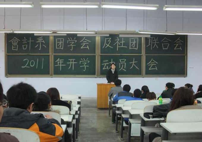 3月3日下午15:30,会计系团学会及社团联合会新学期全体成员大会暨本学期团学工作布置会在一号楼108隆重召开。会计系团委书记兼行政秘书郑晶老师、系团委常务副书记焦阳老师及会计系团学会、社团联合会副部级以上所有成员共一百多人共同参加了大会。