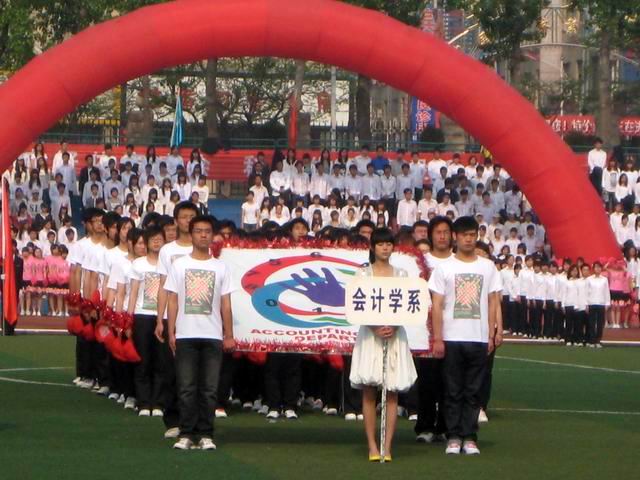 系体育部和田径队员工干部负责运动员的日常训练,他们和所有运动员们互相配合,积极认真参加训练,即使很苦很累他们也都坚持到了最后;为了在开幕式上有所创新,从仪仗队的组建、训练到最后正式亮相,期间四周时间系领导高度关注,同学们积极参与,大一同学人员不足,大二同学积极配合补充,团学会成员负责考勤,所有工作都分工明确,有条不紊。每天的训练虽然比较枯燥辛苦,但队员们没有任何怨言,开幕式上,会计系一改以往形象,以白色T恤,红色运动帽的清爽装束闪亮登场,让全场观众眼前一亮。