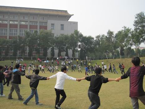 下午2点,在班委的带领下09会电本一班、09会电本二班、09会电本三班和09涉会一班的全体同学如约来到体育馆旁边的草坪上。活动开始前闫老师强调本次联谊会的目的是让同学们在游戏中增进交流,锻炼能力,希望同学们能欢乐而来,尽兴而归,并要求同学们在游戏的过程中要注意安全。接着,联谊会正式开始。