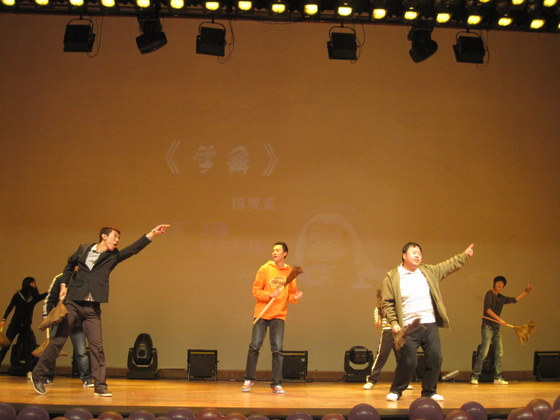 晚会在“黑蚂蚁”乐队充满激情的摇滚歌声中拉开了帷幕,一个个精彩纷呈的节目令人目不暇接:由“精武门”带来的街舞活力四射,让人着实感受到了街舞的非凡魅力;相声《咱爷爷》、《你要折腾》诙谐幽默,令人捧腹大笑;由会计系黄楚睿同学带来的魔术令人大开眼界,使轻松快乐的现场弥漫着几分神秘的气息;恶搞版的小品《五朵金花》、《非常打扰》、《搞好英语》、《学舞》演员表演到位,以讽刺的表演形式激励着广大同学刻苦学习,珍惜大学四年的美好时光,树立正确的价值观、恋爱观;歌曲《你是我的眼》、《one night in 北京》、《爱的代价》、《单面镜》那深情忘我的歌声挑动了在场所有观众的心弦;由多才多艺的国贸系辅导员带来的现代舞《deeply》更是展现了辅导员老师们的靓丽风采;民族舞《俏花旦》舞姿优美曼妙,展现着公司舞坛中坚力量的风采;由会计系带来的服装表演超凡脱俗,透漏着高贵迷人的气息。最后,由企管系同学带着对创办人、对母校、对领导老师的感恩之情表演的手语歌曲《感恩的心》将整场晚会的气氛推向了高潮。晚会在雷鸣般的阵阵掌声中圆满落下帷幕。