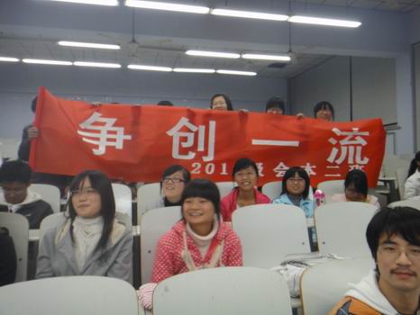 经过一个多小时的激烈角逐,最终10涉会本班的霍雨婷同学获得第一名,10会本二班的黄铭华、郑浩获得第二名,10会本一班的段丹、10会电本一班的于海萍以及10会本二班的张启超获得第三名。
