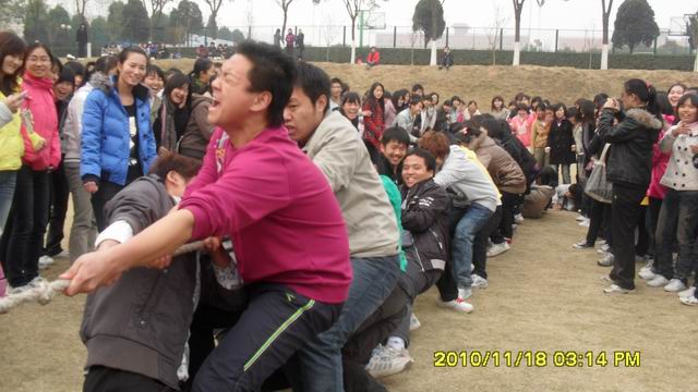 为丰富同学们的课余生活,提高员工的身体素质,激发同学们参加体育锻炼的热情, 11月18日下午3点,由会计系2010级团总支组织的新生拔河比赛在体育馆东侧草坪如火如荼地举行,会计系10级全体新生积极参加比赛。10级辅导员晏玲玲、张晓亲临现场为同学们加油助威。