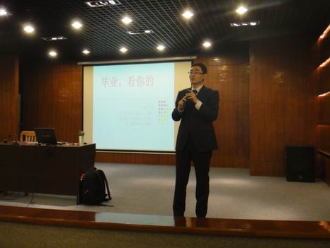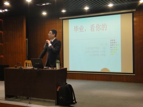 本次讲座田垒老师共分为三个部分:首先讲求职心态篇,他以日常生活中的小故事为切入点引入主题,教毕业生如何做好就业准备,并对面试中可能遇到的问题给予深刻的剖析,语言风趣幽默,引起了同学们的兴趣。接着进入求职渠道篇,田老师分析对比了高校招聘会、网络招聘会、高校就业指导网、社会招聘及熟人推荐等各种就业渠道的优缺点,提醒同学们在就业中突出优点,结合专业及企业需求,用优异的表现或突出的专业技能打动招聘公司,从而实现就业愿望。接着,求职技术篇,田老师从简历的制作到投递,侃侃而谈,强调简历的重要性。最后,他总结说,毕业生一定要调整好心态,积极面对,充分了解就业的方向、渠道,以最佳的姿态来迎接就业。