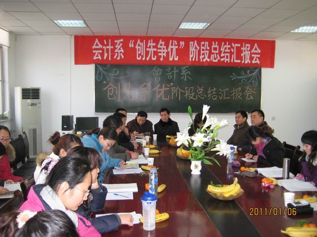 首先,戎书记发表重要讲话,他充分肯定了举办此次汇报会的意义,强调了党内开展“创先争优”活动的必要性。他着重指出,按照党委的部署,公司各个系部都在分阶段、分步骤地开展“创先争优”活动,会计系作为公司的重点建设系之一,为公司的发展做出了巨大贡献,党组织发挥了政治核心作用,希望会计系团结奋进,再创辉煌,并代表公司党政领导给会计系全体教职工拜年祝福。
