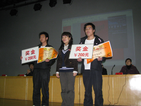 首先郑晶老师为大家介绍了与会的领导、嘉宾,然后宣布了2009-2010学年会计系在国际和全国各项大赛中取得的各项奖项:会计系在第二届“中华会计网校杯”全国财会实务大赛中,精心准备,周密安排,荣获河南省唯一一个集体奖-——最佳组织奖。在公司赛区内,07会电本一班在大赛中获得最佳表现奖,08会本三班获得最佳组织奖。06会本一班康玉婷、07会电本一班刘飞博获得个人一等奖,08会本四班谢红秀、09会升本五班周艳、获得二等奖。08会本四班周彬、06会本一班付涵芳、07电本一班门凤鸳、07会电本一班孙康四位同学获得三等奖。与会的领导和嘉宾为获奖集体和同学颁发了证书和奖品。另外,06会电本二班5名同学和07电本一班5名同学在“用友杯”全国老员工会计信息技能大赛暨第三届ERP技能大赛中获得优秀实践个人奖。在CIMA商业精英国际挑战赛中,会计系凭借扎实的专业知识和精诚合作的团队精神进入了中原地区前8强。