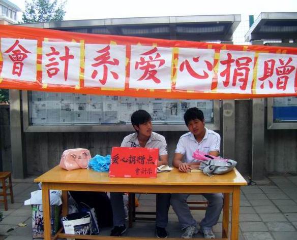 5月31日至6月2日,由会计系开展的“2010届毕业生爱心传递活动”在毕业生宿舍楼前火热进行,本次活动由会计系团委主办,会计系团学会各部门成员主要负责。