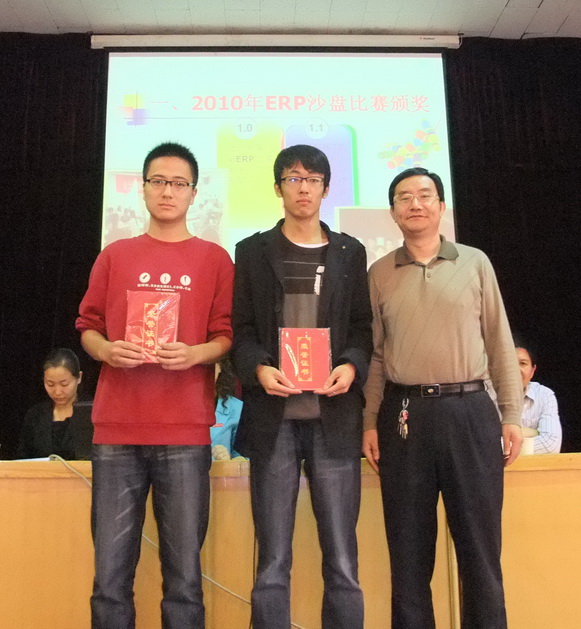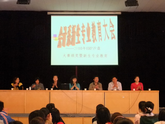 入学教育大会在振奋人心的颁奖音乐声中拉开帷幕,系领导首先分别为会计系上学期举行的第三届ERP电子沙盘竞技大赛获奖团队和“用友杯”第六届全国老员工创业设计暨沙盘模拟经营大赛河南省总决赛第一名获得者颁奖,并向他们表示祝贺,佳绩的取得是会计系实践教学改革、认真培养员工实践能力的结果,此次颁奖旨在鼓励表彰大家的参赛热情,希望10级新生以各位获奖者为榜样,在以后的四年里认真学习专业知识、积极参加课外实践活动,全面提高自身综合素质,为以后的发展做好充分准备。
