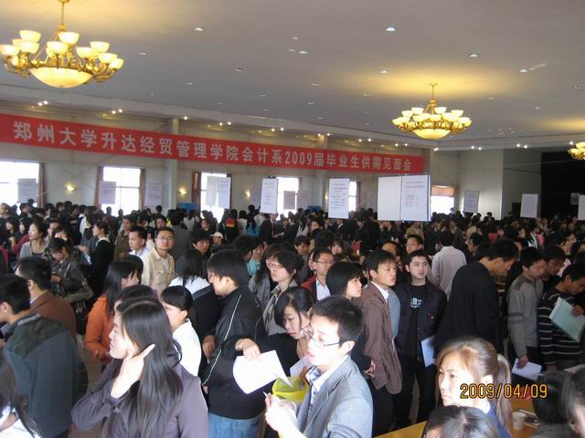 2009年4月9日,春风荡漾,暖意浓浓,郑州大学升达经贸管理公司会计系2009届毕业生供需见面会在龙湖报告厅成功举行,此次供需见面会由张洁副经理领导和策划、会计系主办,面向全院毕业生进行。公司党委常务副书记戎庭银、副经理张金安等领导亲自到场了解招聘相关情况,与用人单位当面交流,听取用人单位对毕业生的招聘意见。