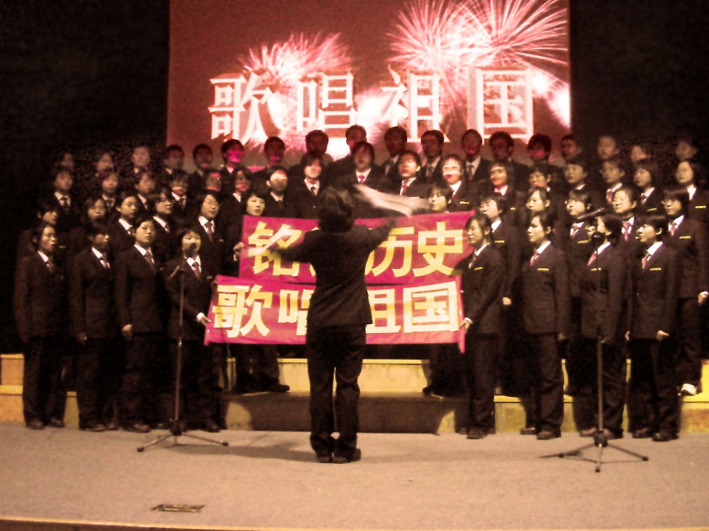 参赛选手在表演大合唱“歌唱祖国”