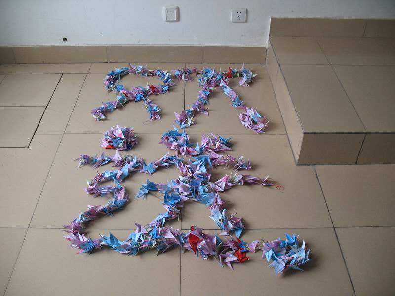 系列活动一:毕业送祝福,纸鹤传真情。06级本、专科员工利用课余时间亲手折叠了1321支充满寄托的千纸鹤。同学们在千纸鹤上书写了对学长学姐的深情祝福,表达了对毕业生的良好祝愿。纸鹤虽小,但是所传递的感情炽烈而真挚。