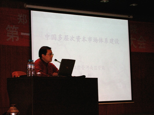 12月13日下午,外语一号楼多功能报告厅,中国证券监督管理委员会河南监管局党办主任,高级会计师,注册会计师吴楠老师为公司师生作了一场题为《中国多层次资本市场体系建设》的报告。报告会由系教学秘书吴志超主持。